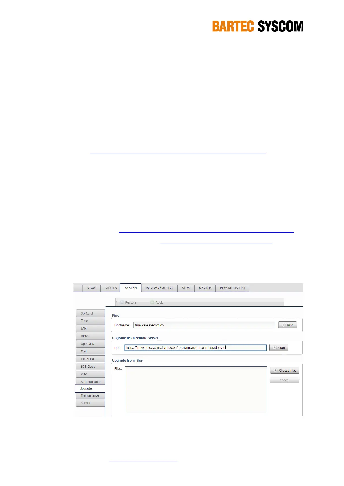 to know the URL for this upgrade. This is provided by SYSCOM when a new firmware is