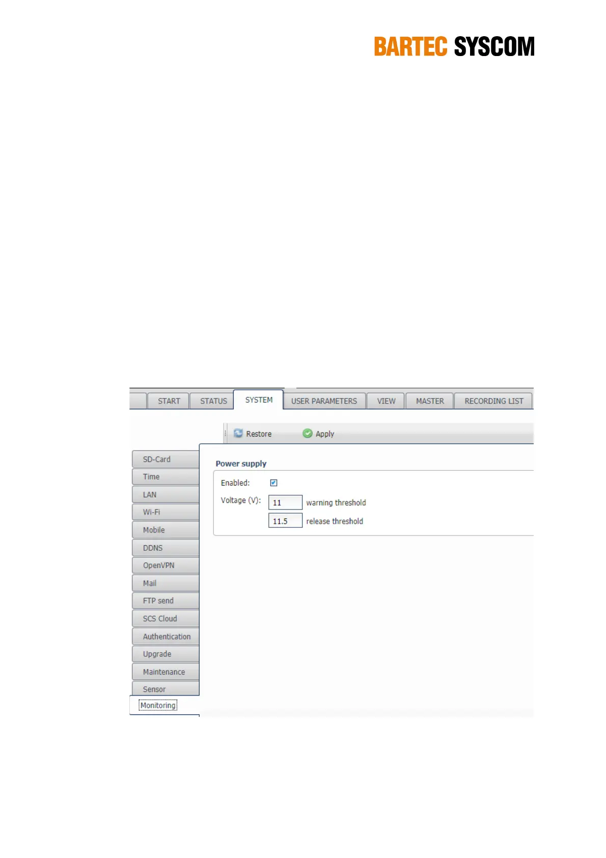 The section Monitoring has been added in firmware version 2.0.7. It includes the possibility to