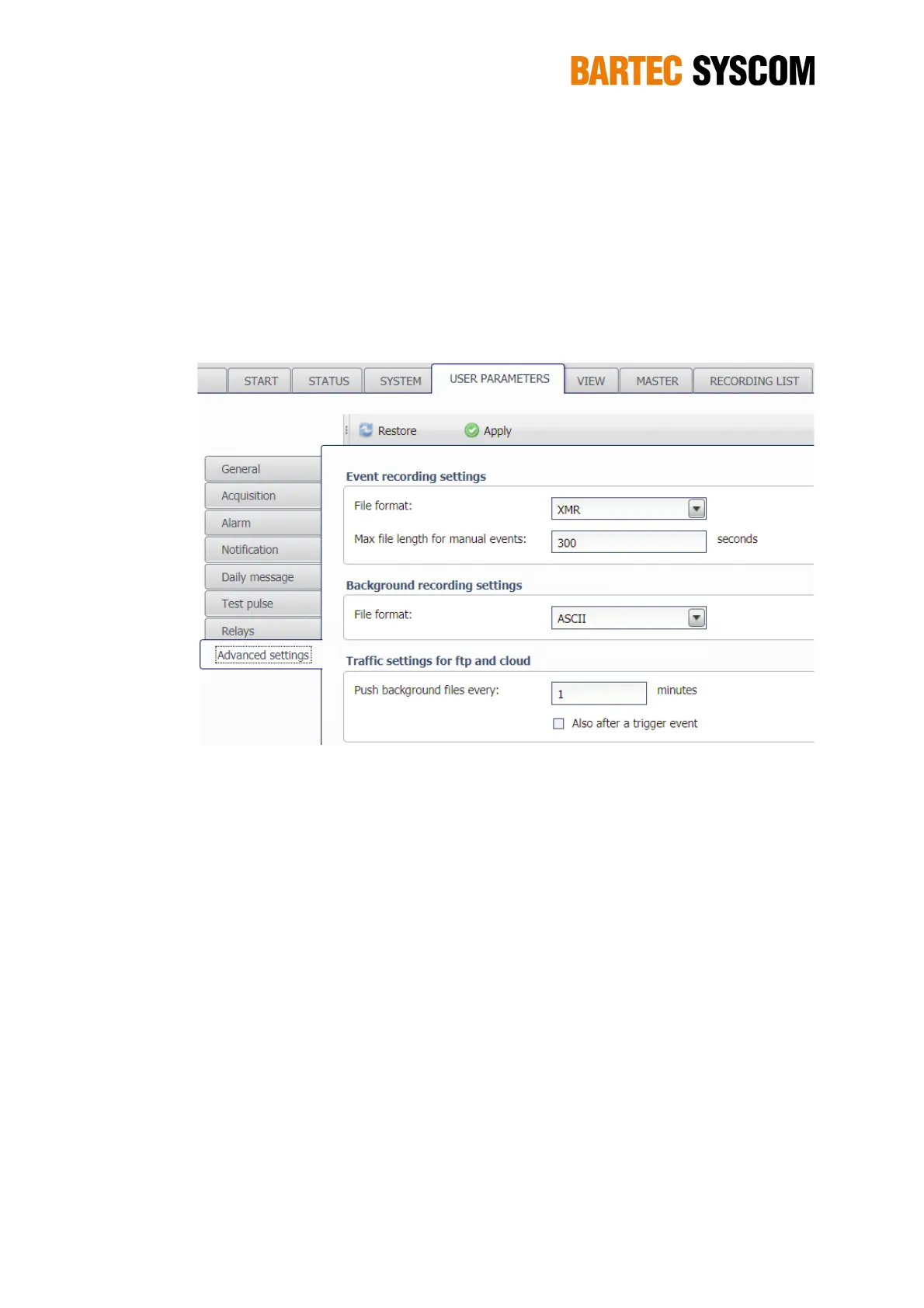 Figure 5.4.14. Subsection dedicated to advanced settings.