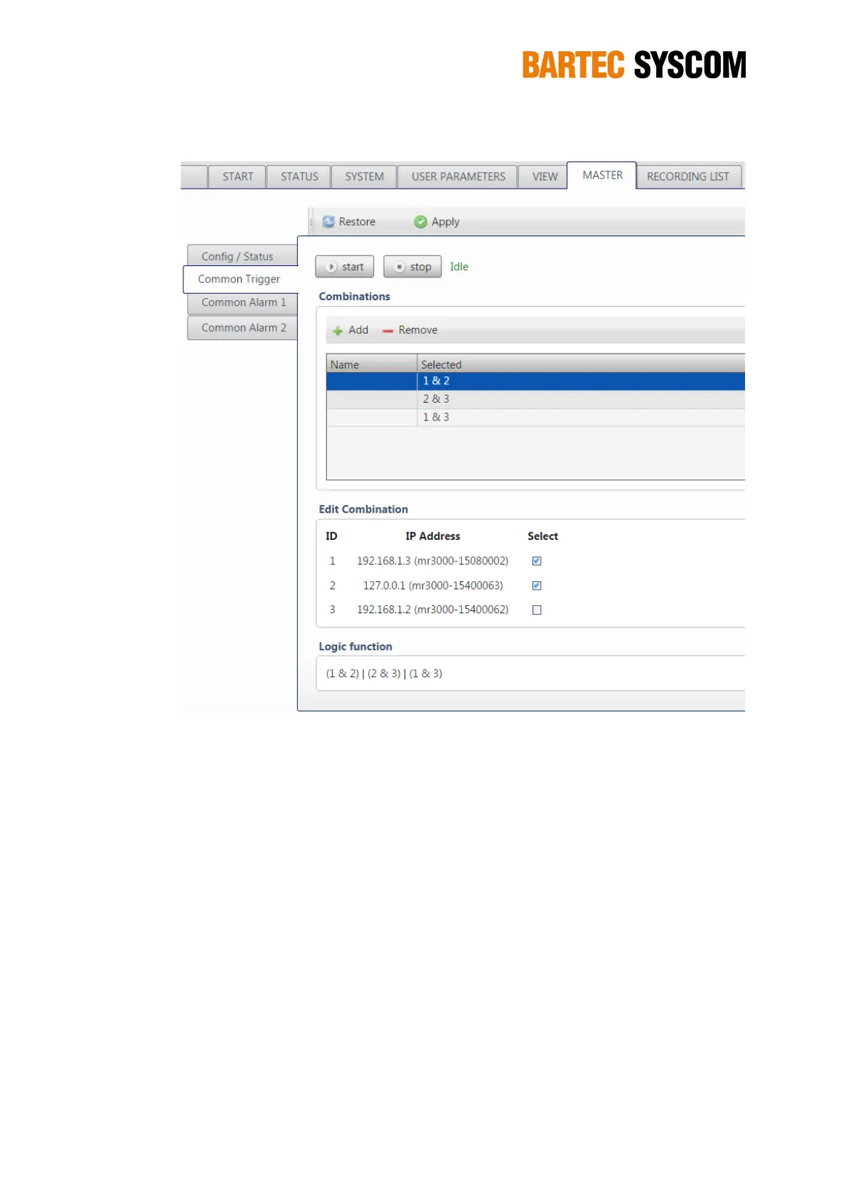 Figure 5.6.2. Subsection dedicated to the setting of the common trigger.