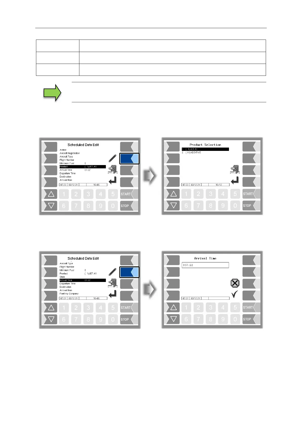 Enter the arrivel time of the aircraft to be refuelled here.
