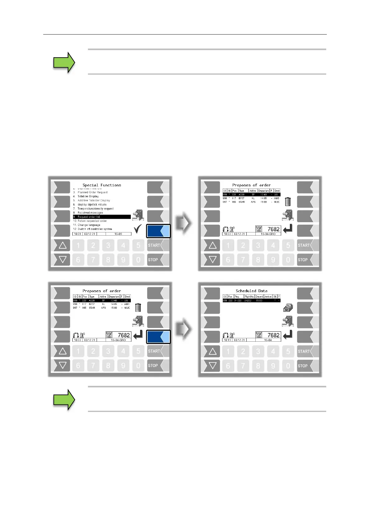 Under Special functions (order data) the menu item "Request order list" is displayed. This allows orders