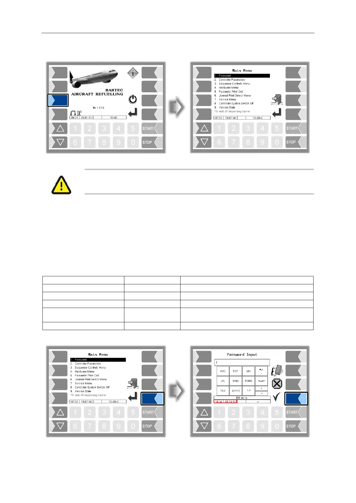 on the display. Each password level includes all the lower password levels. Only the menus and