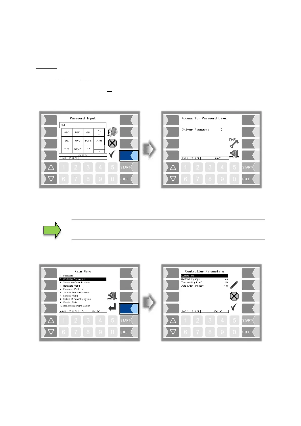 The driver password can be entered using the alphanumeric input field. The driver password is the sum