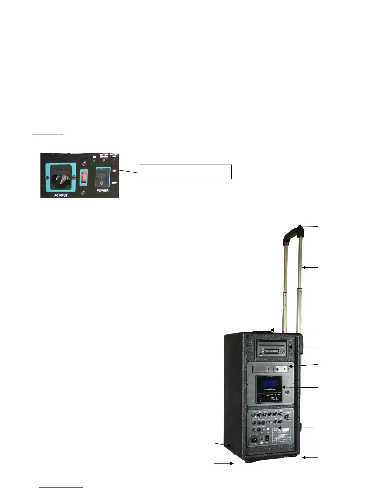 For a mains supply use, connect the mains cable, and turn switch « ON/OFF » on. The power LED lights