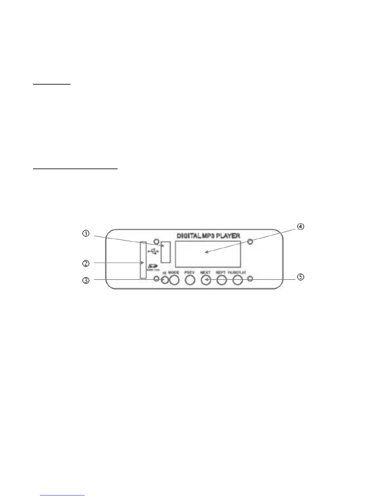 - 3 play functions: reading of all songs, repeat a song, reading all songs of current folder (ALL, 1, or F).
