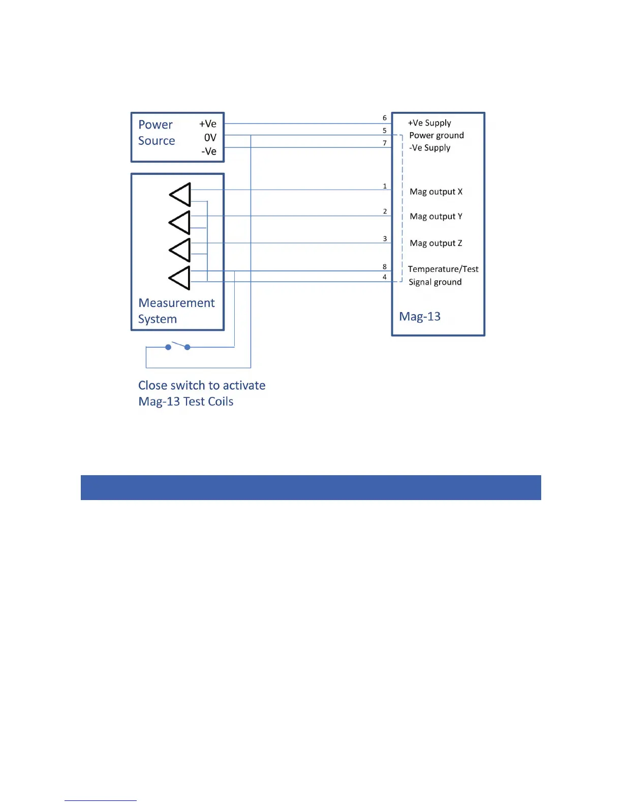 The test coil can be activated by grounding the relevant pin of the Mag-13 output connector, i.e.