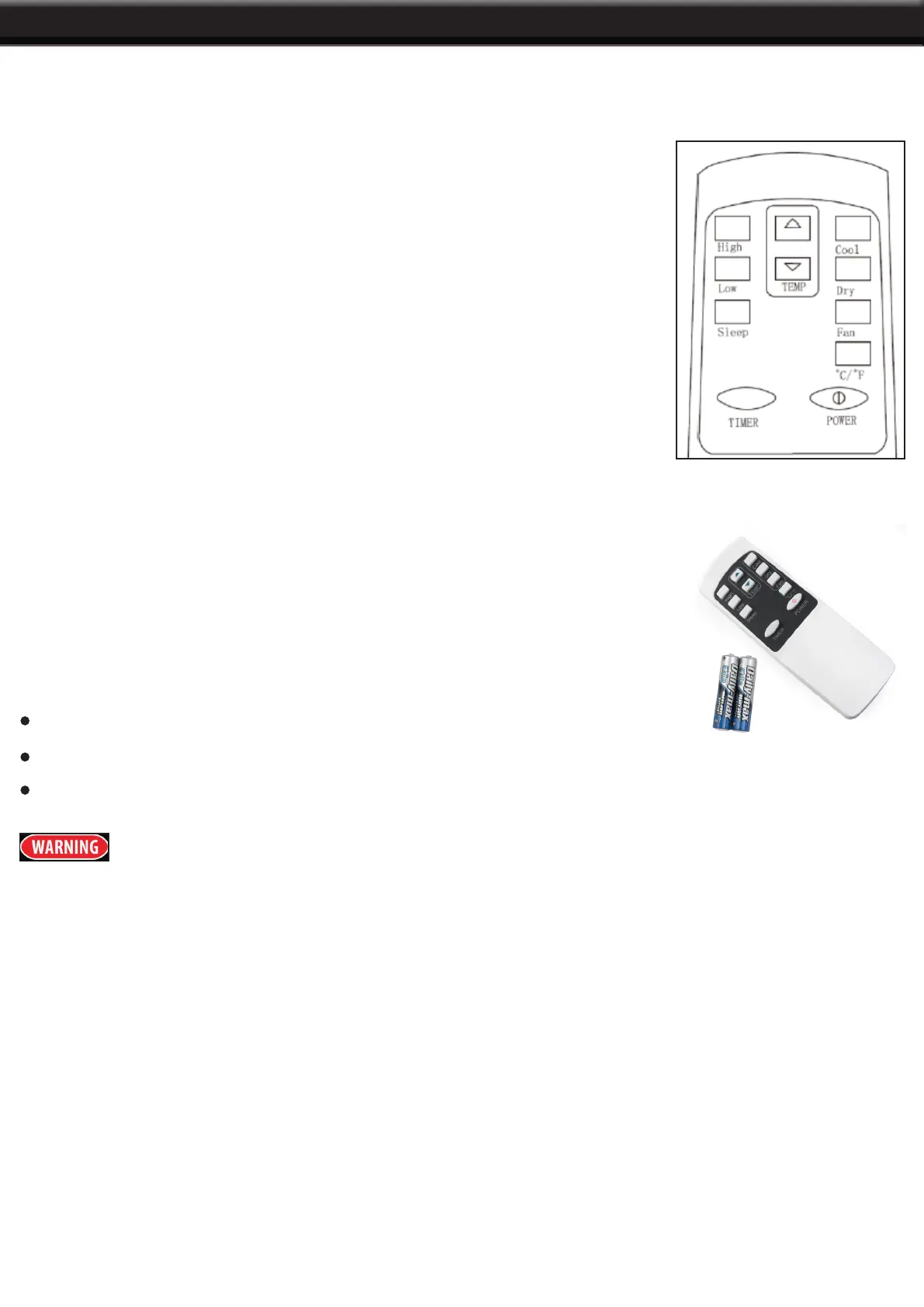 If the air conditioner will not be used for an extended period of time, remove the batteries from the remote