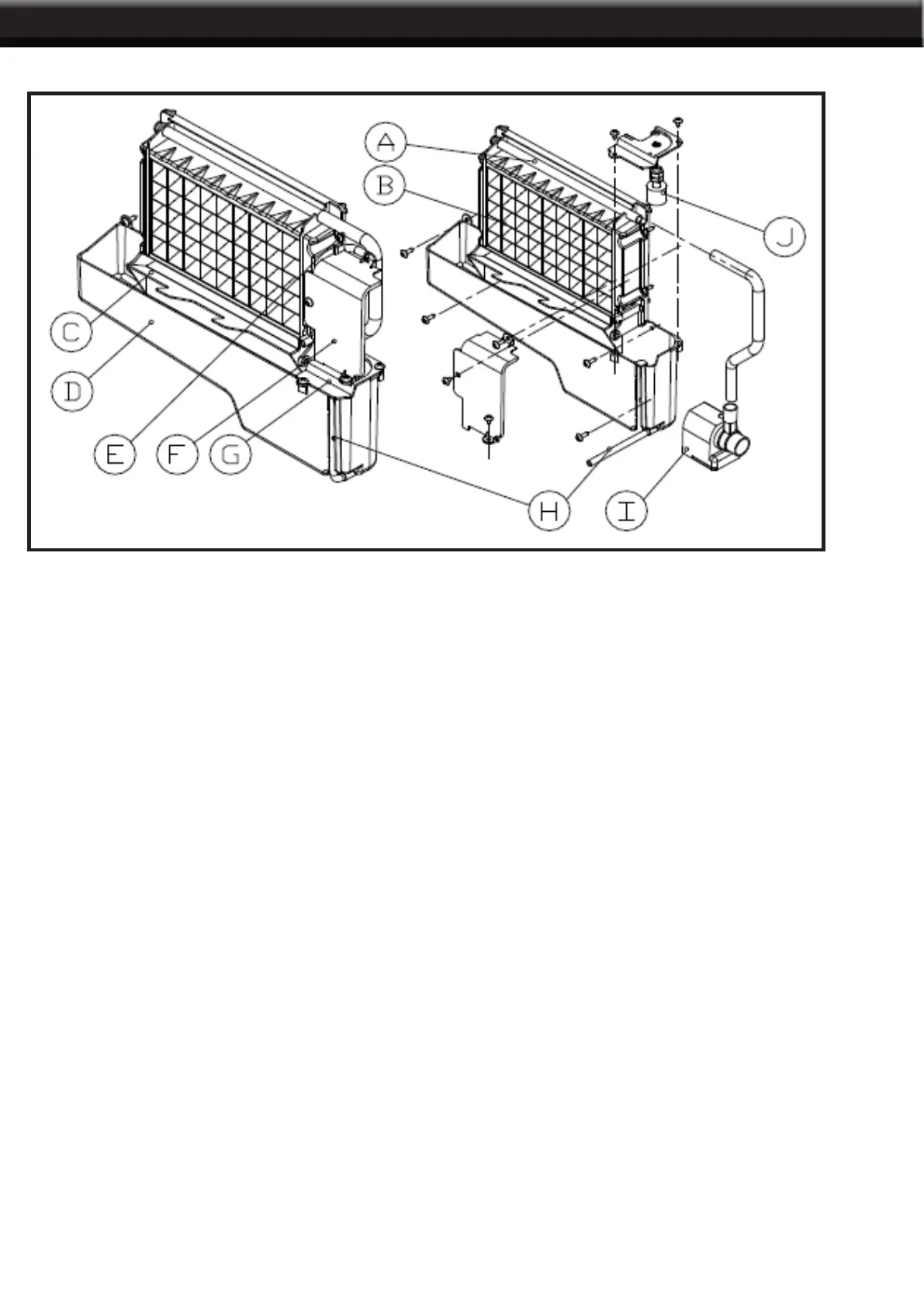 F. Cover board on the right side of the evaporator