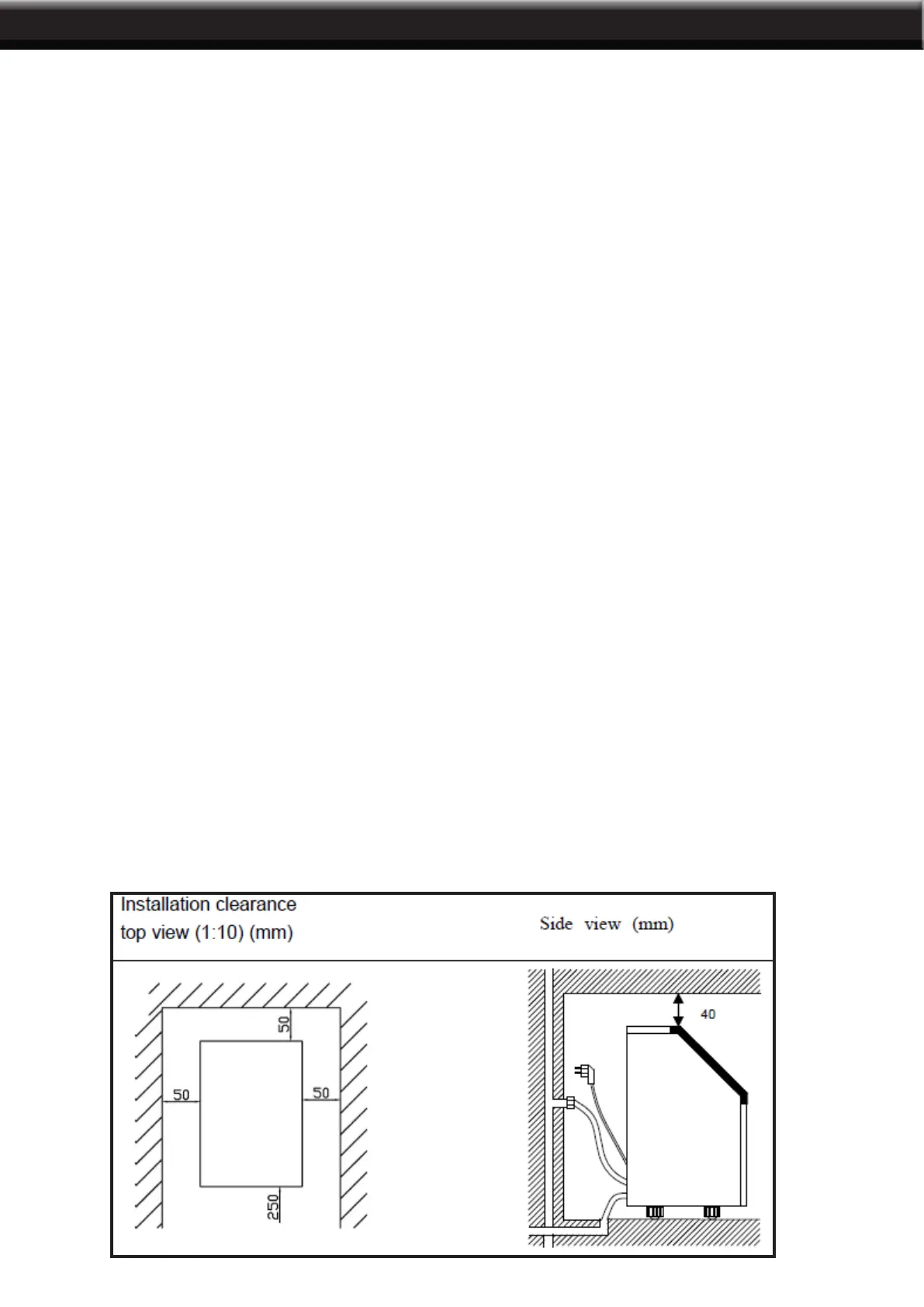D) There must be at least 6 inches clearance at rear side for connection and 8 inches clearance in front to