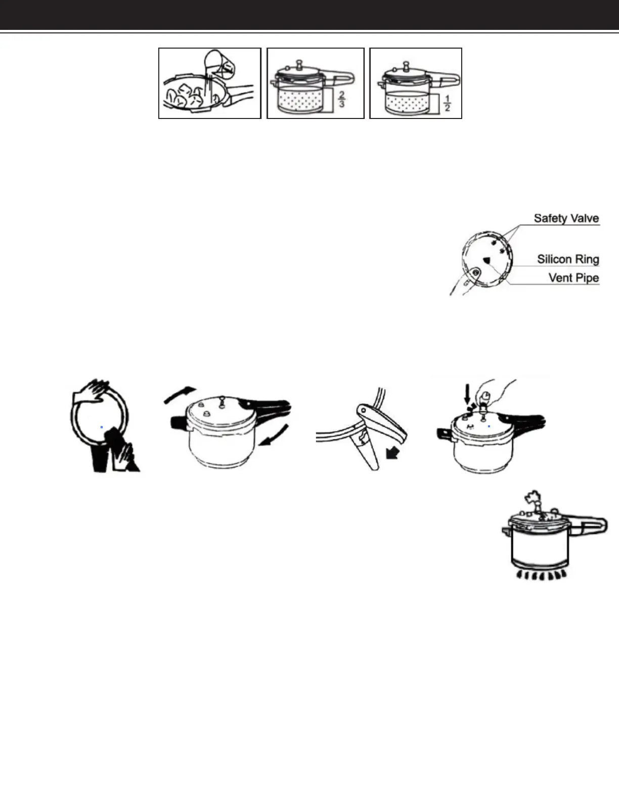 oang valve remains in its raised posion, there may sll be pressure inside the pressure cooker. Connue to cool unl