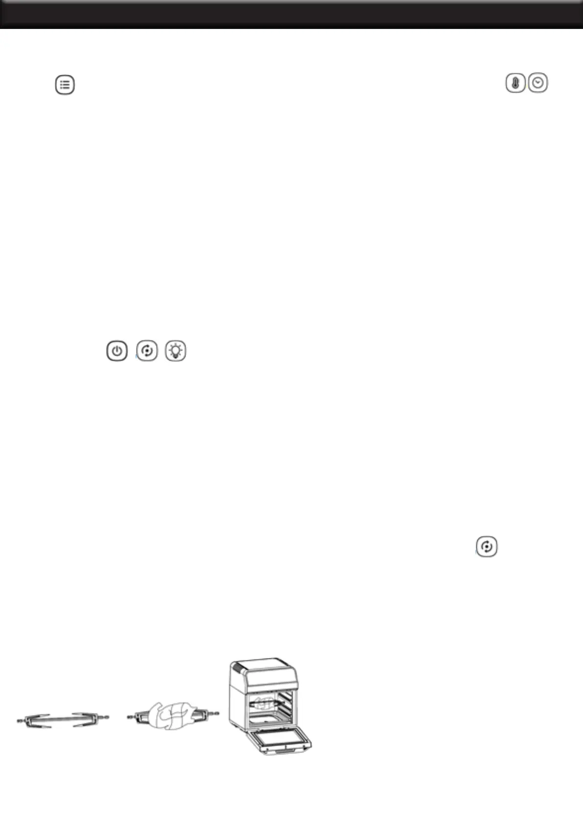 Rotating function: This function makes the food even more heated. Pressing the will ash the