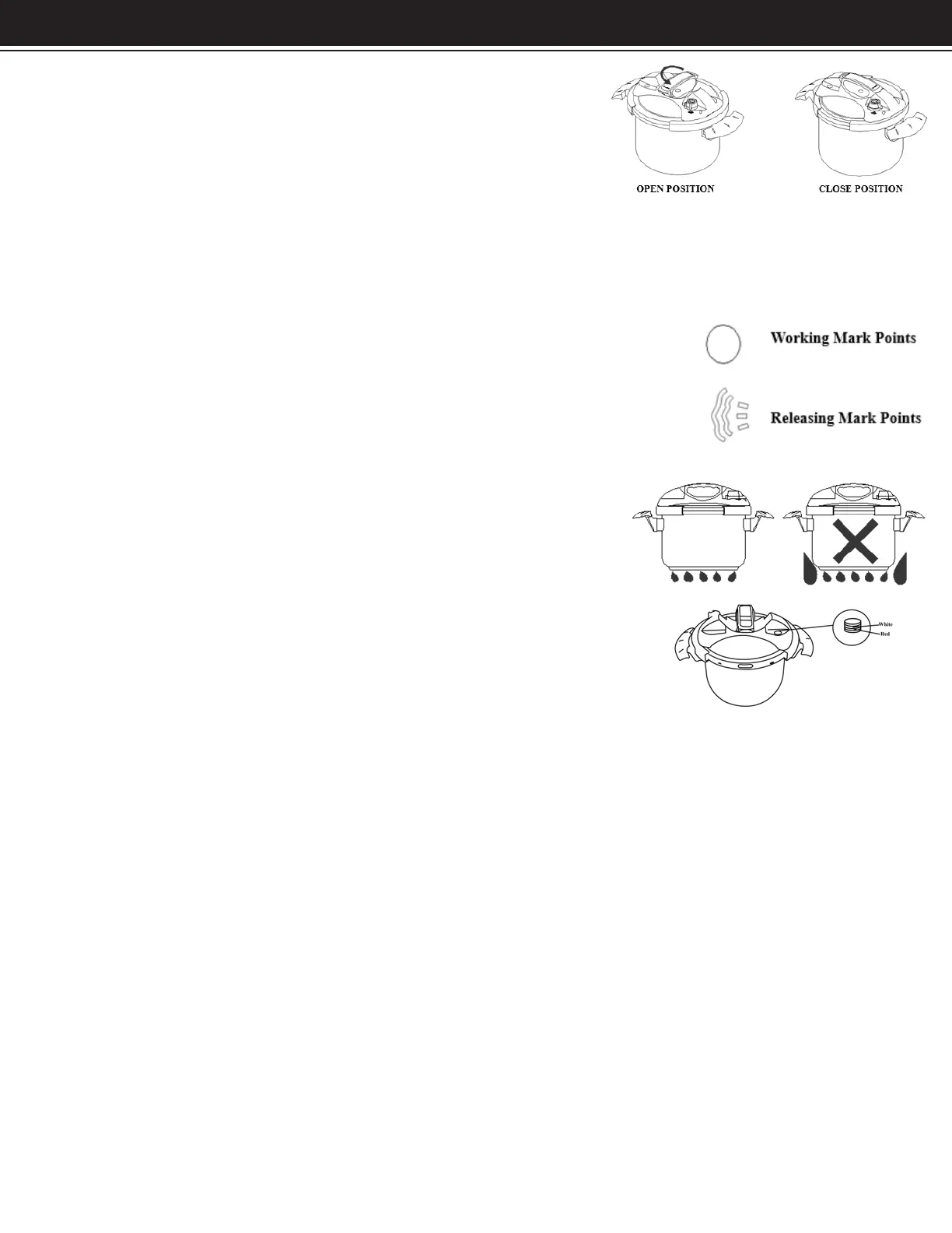 of pressure cookers. And make sure the releasing vent toward the working mark points, not toward the releasing mark