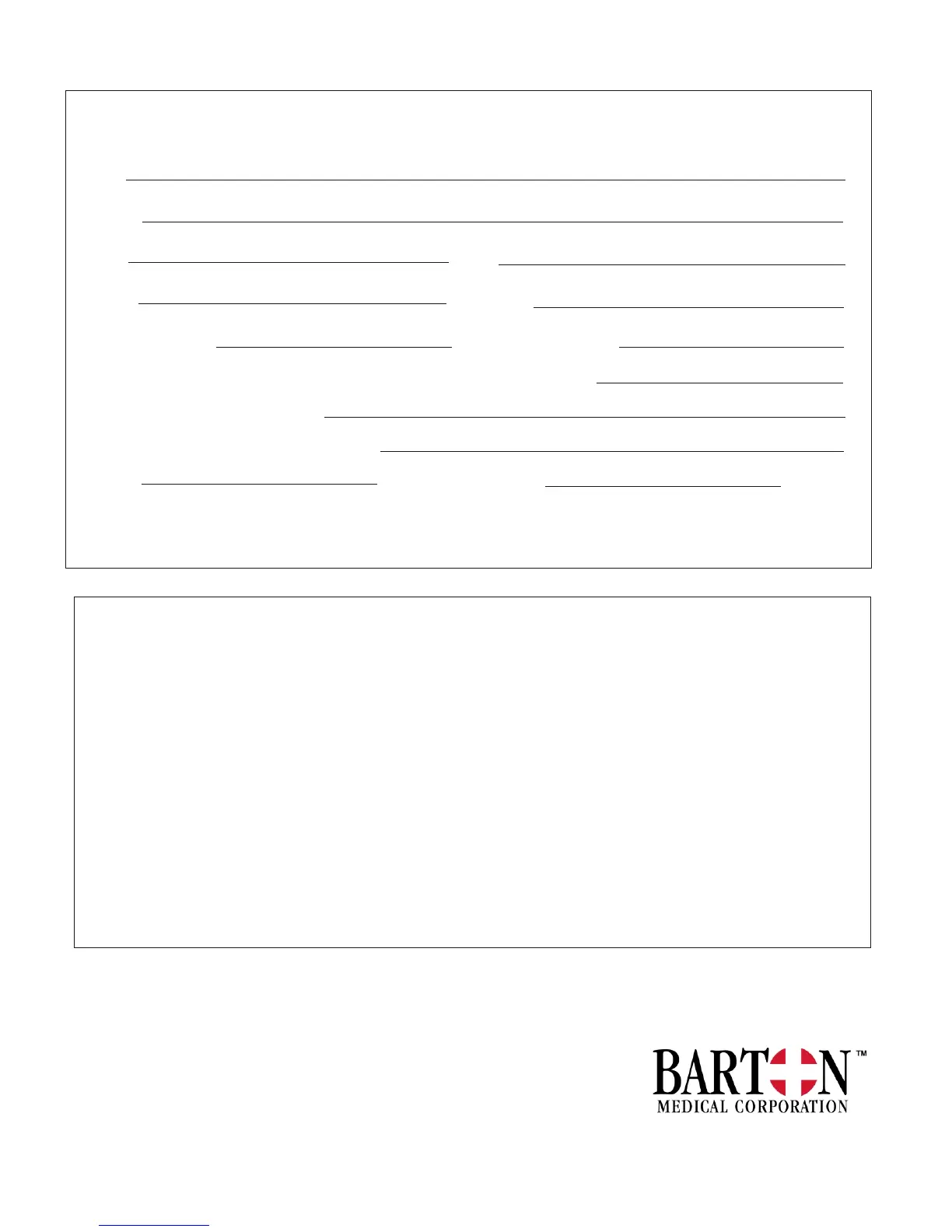 Barton Medical Warranty Card