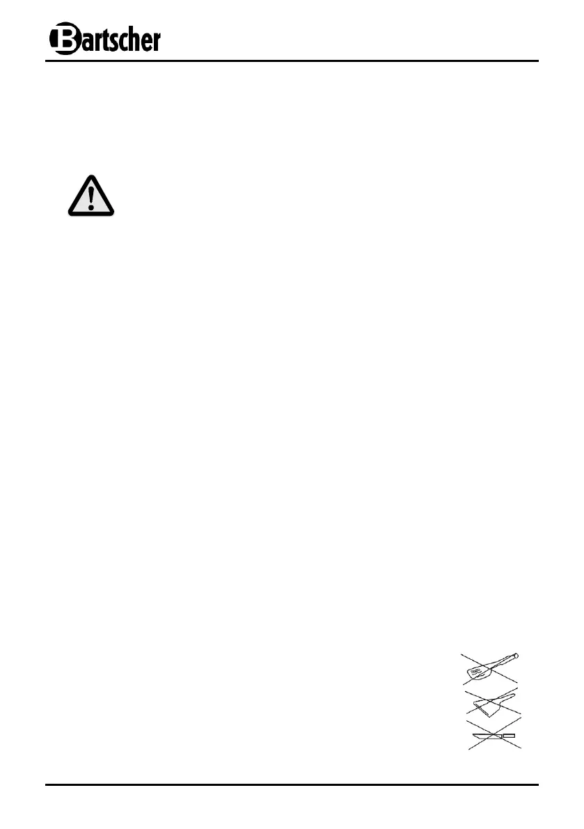 Keine scharfen Utensillien aus Metall benutzen, nur