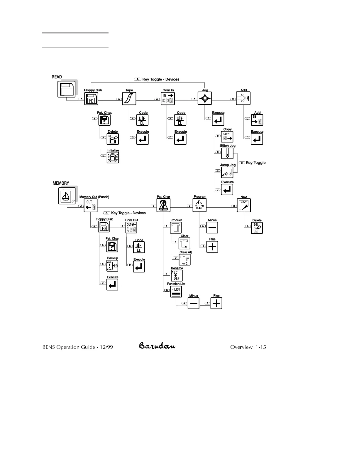 The menu structure illustrates the basic operations found on the BENS. Some levels of