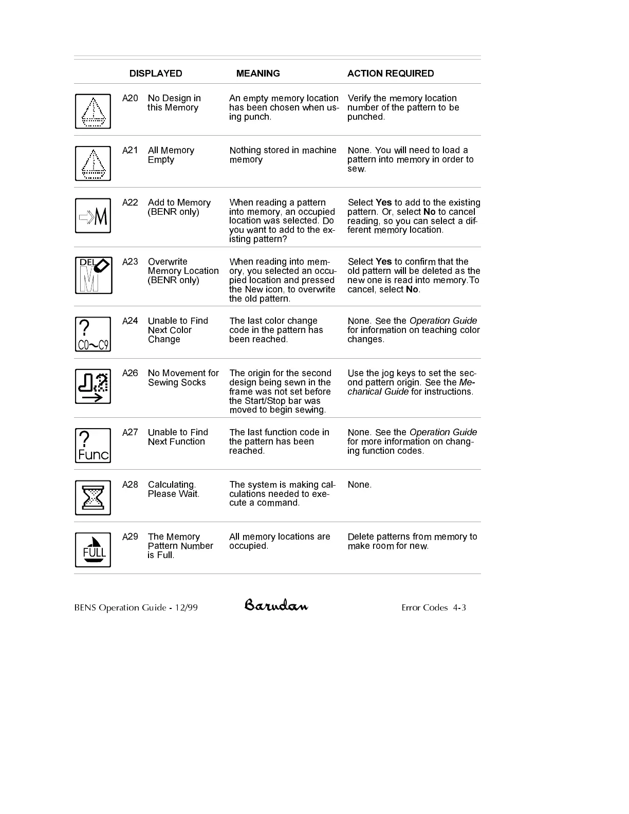 BENS Operation Guide - 12/99 Error Codes 4-3