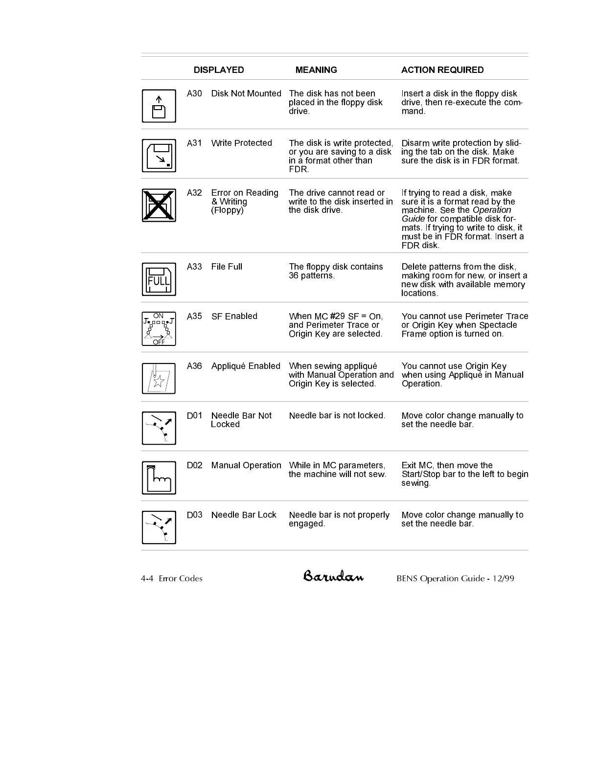 4-4 Error Codes BENS Operation Guide - 12/99