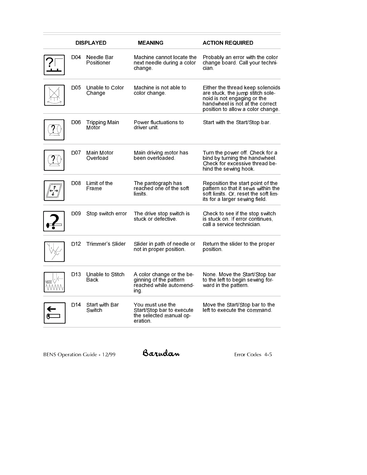 BENS Operation Guide - 12/99 Error Codes 4-5