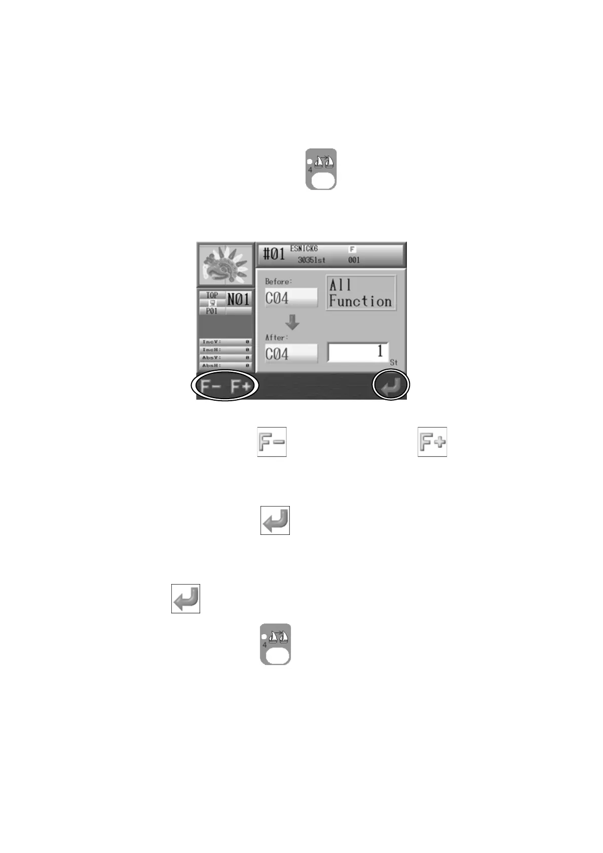 * An A24 message appears after the last color code in the design is found. Press the G-key
