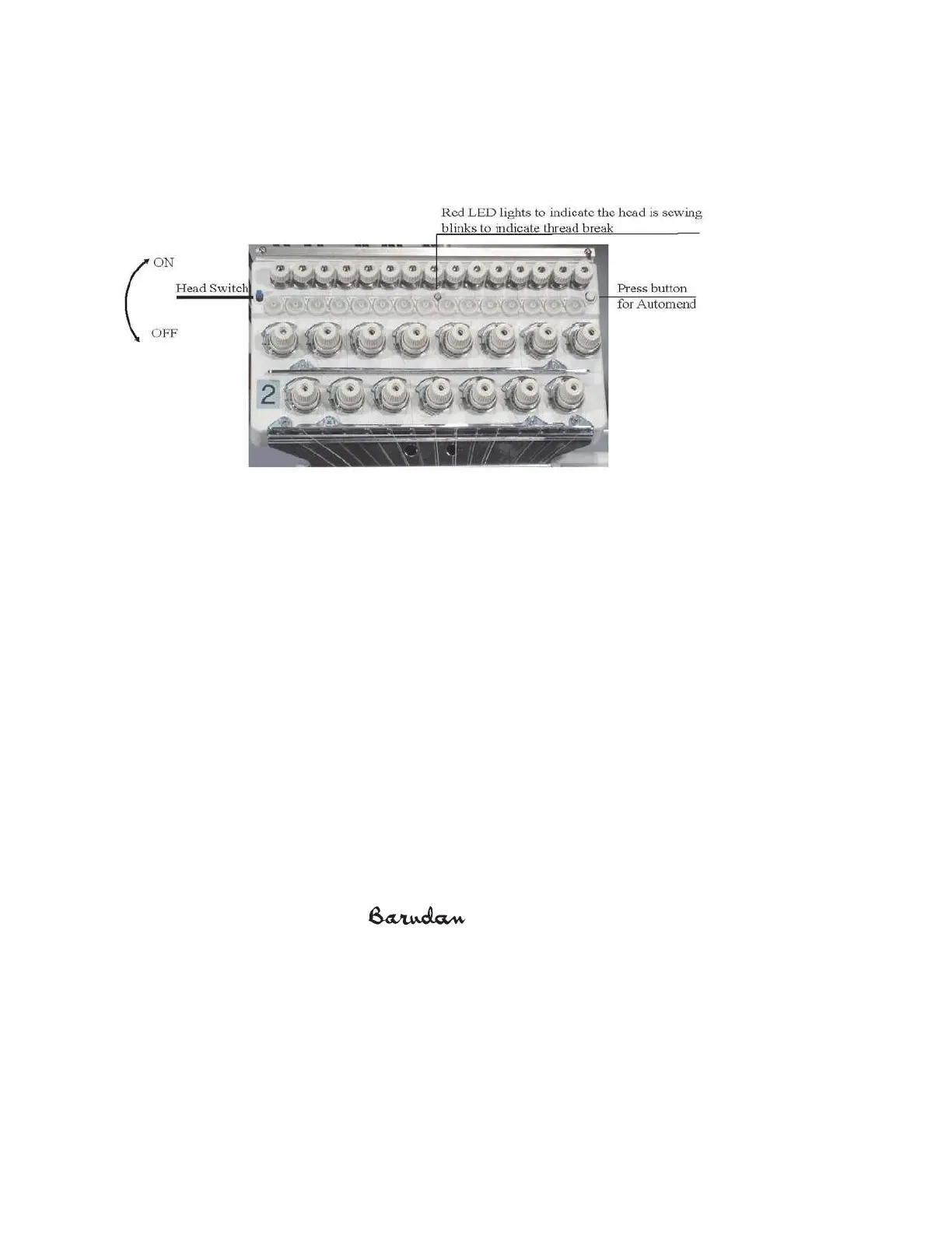 stopped, turn off the thread break switch by placing it in the down position; to restart the head