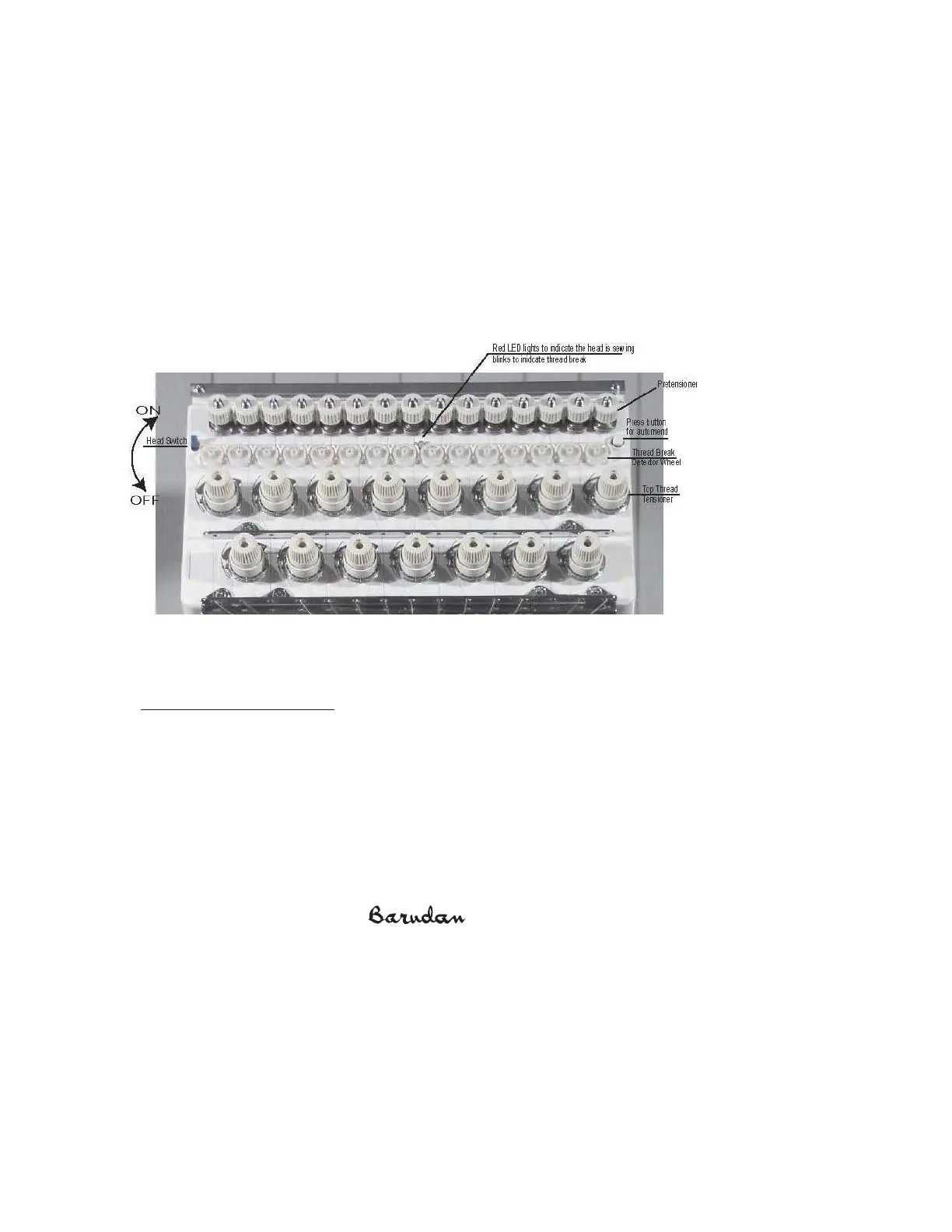 using, to allow a smooth flow of thread to the top tensioners. The pretensioners should only