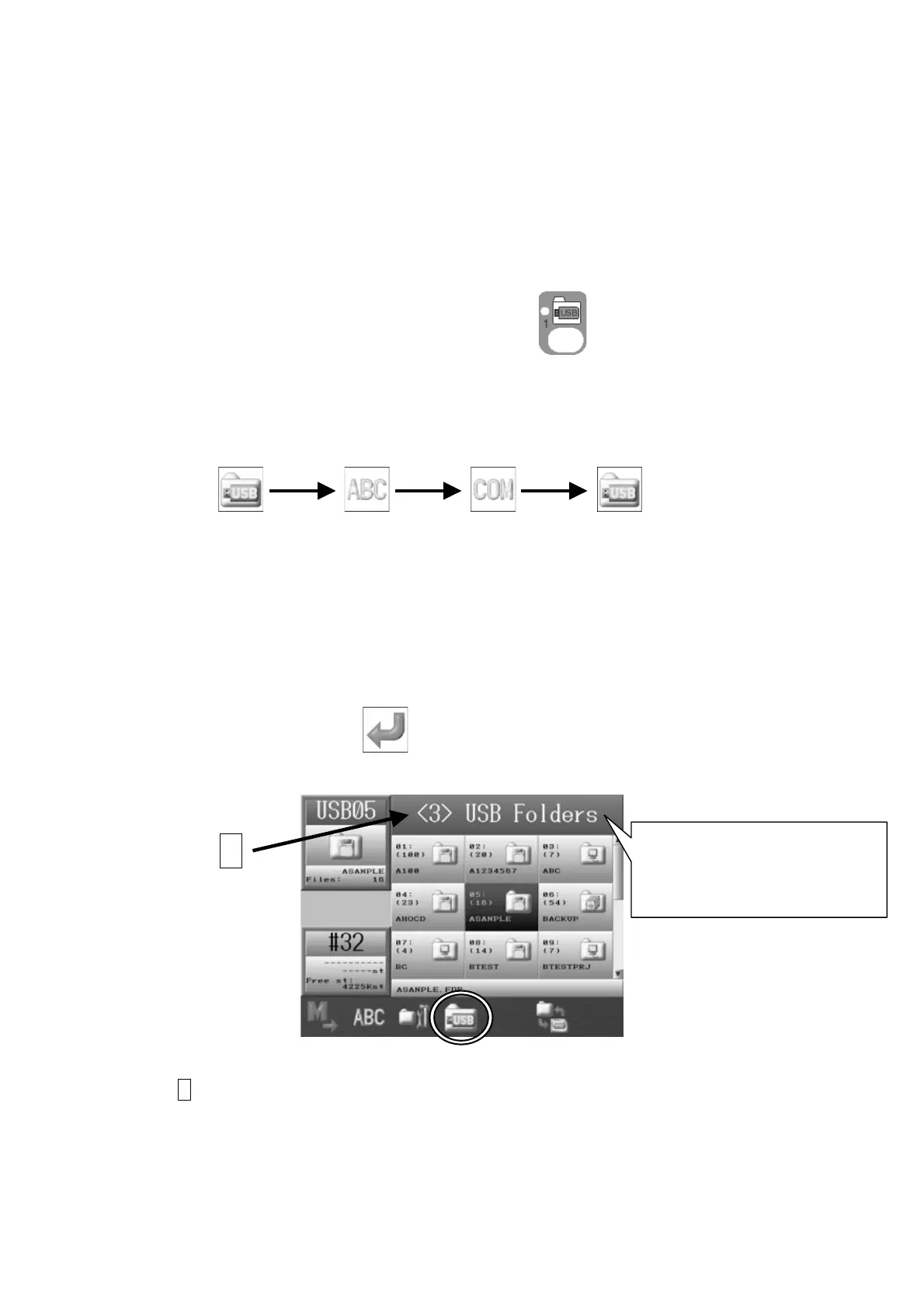 3. When the USB icon is selected, press the D-Key to cycle through the 3 USB Ports