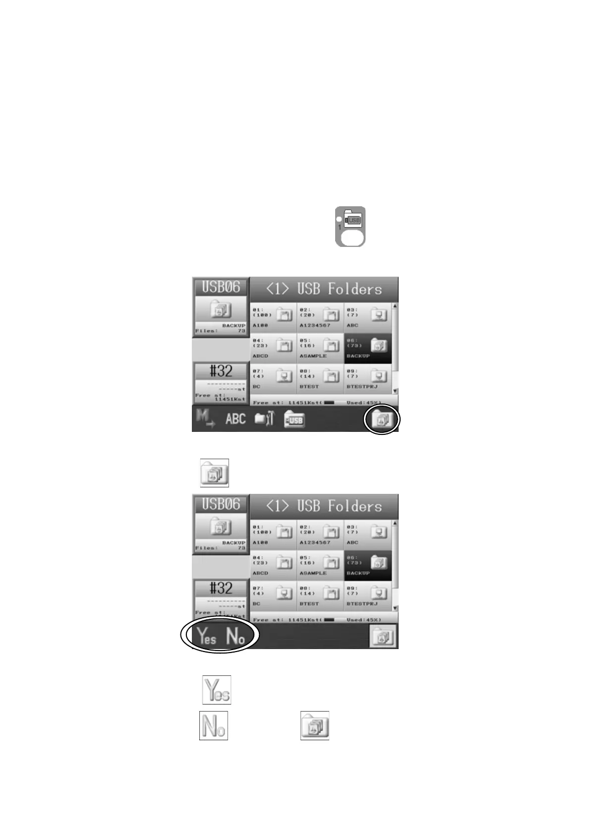 2. Use the Jog keys and select the XSB Back-up folder that you want to restore.