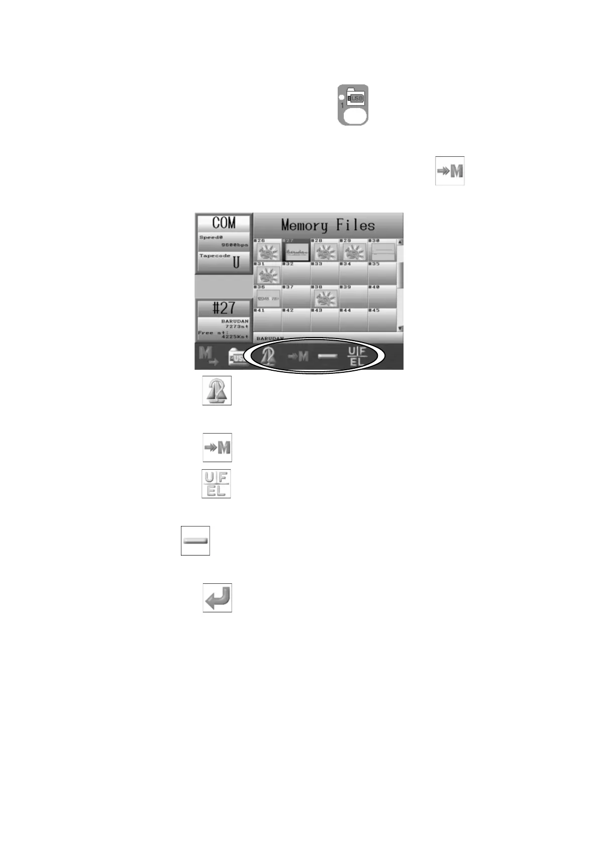 2. Use the Jog keys and select a design in Memory to add the design to.