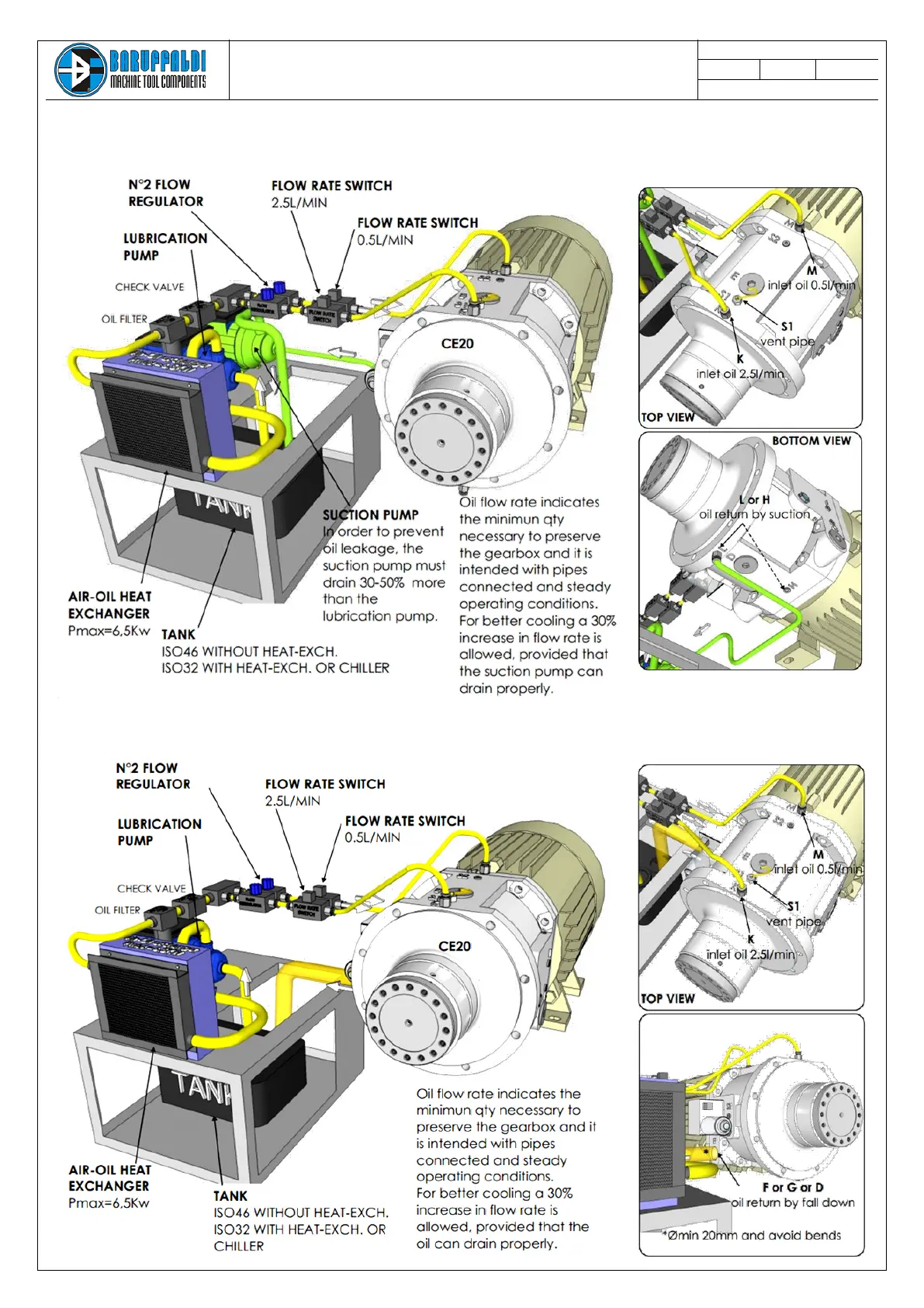 Baruffaldi CE 13 - CE 20 - Horizontal Assembly - Forced Lubrication with Suction Pump; CE 20 - Horizontal Assembly - Forced Lubrication with Oil Return by Fall down