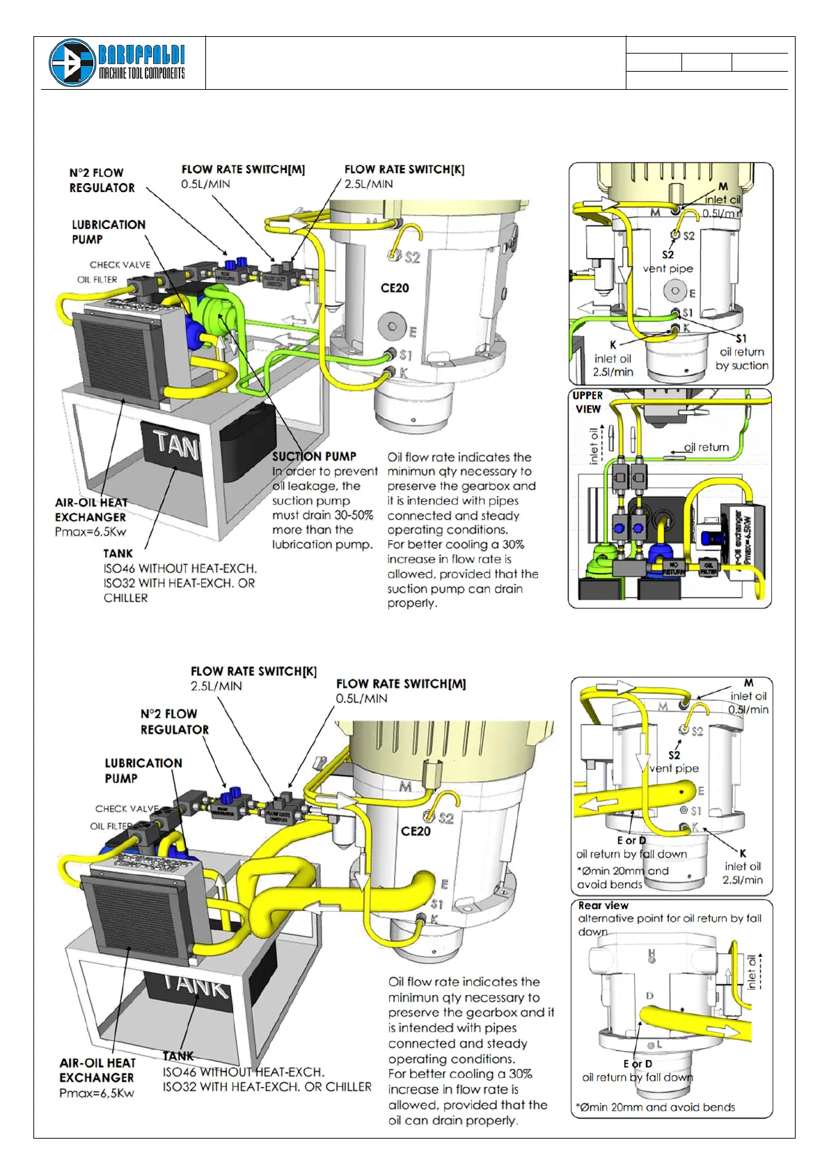 Baruffaldi CE 13 - CE 20 - Vertical down Assembly - Forced Lubrication with Suction Pump; CE 20 Vertical down Assy - Forced Lubrication with Oil Return by Fall down