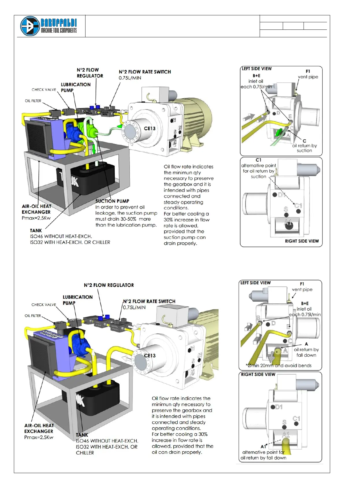 Baruffaldi CE Series - CE 13 - Horizontal Assembly - Forced Lubrication with Suction Pump; CE 13 - Horizontal Assembly - Forced Lubrication with Oil Return by Fall down
