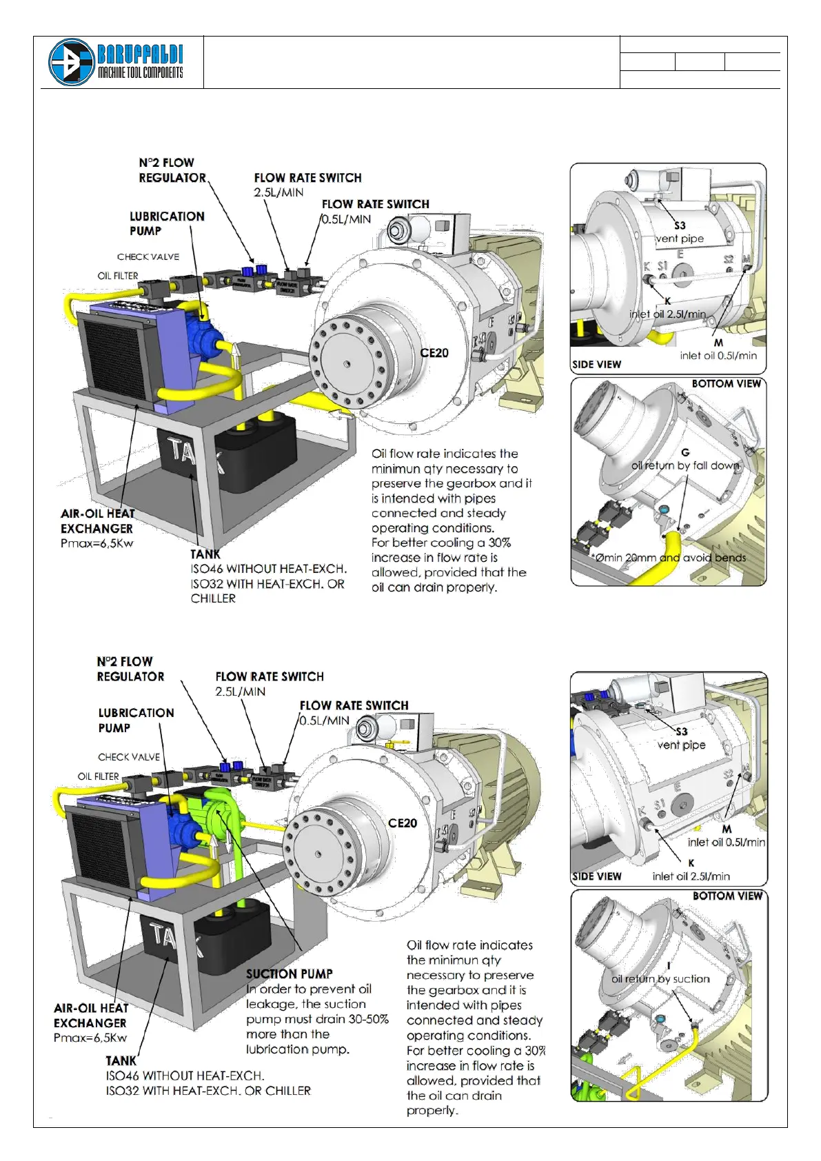 Baruffaldi CE Series - CE 20 - Horizontal Assembly - Forced Lubrication with Oil Return by Fall down; CE 20 - Horizontal Assembly - Forced Lubrication with Suction Pump