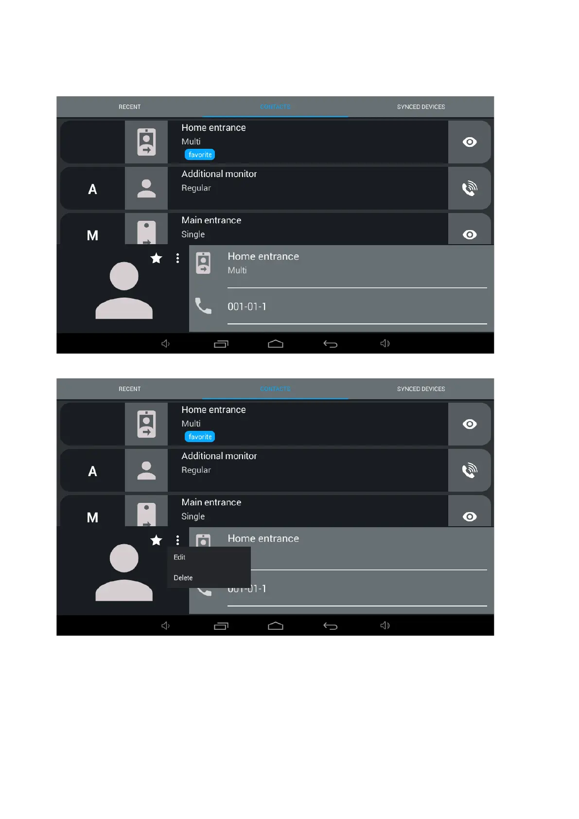 By pressing the button in the upper left corner, you can edit or delete a contact.