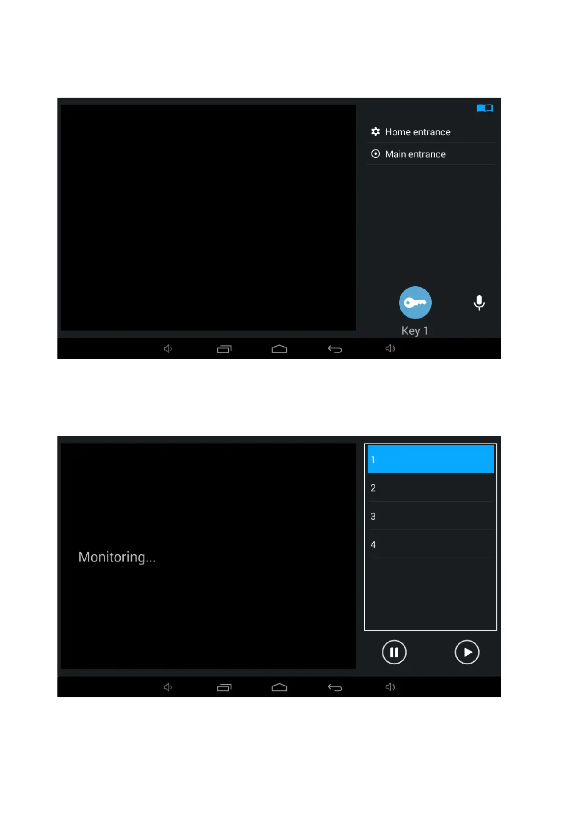 This menu allows to view IP cameras streams, switching between them in the list.