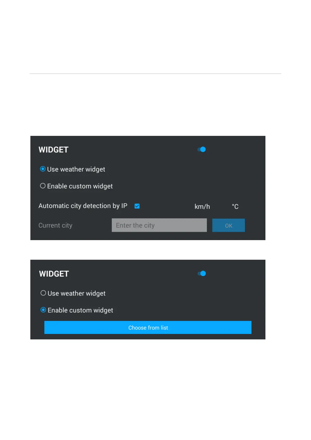 Auto-detect city by IP:Enable/disable automatic weather detection function by IP address (If