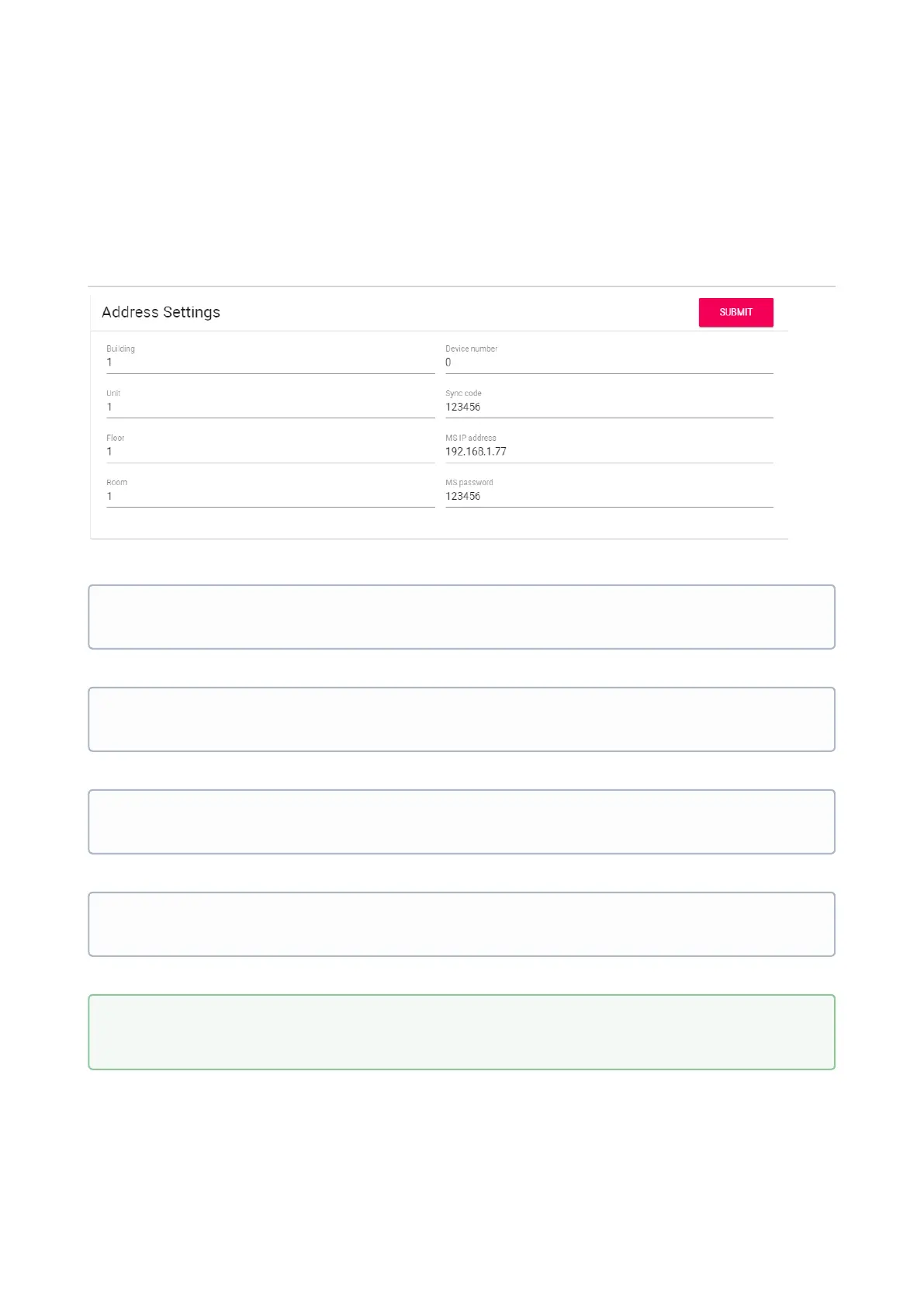 MS IP address:The address of the PC or server where the monitoring software for the intercom
