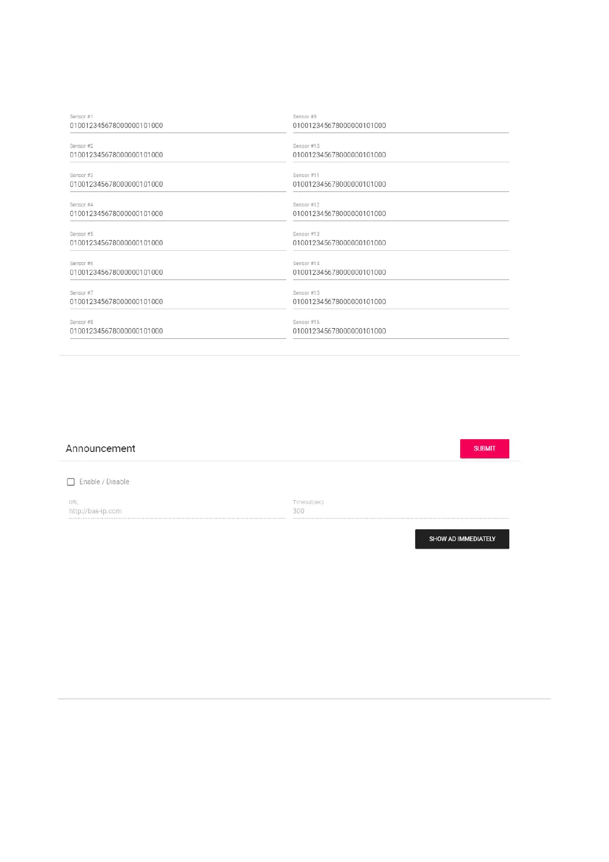 Sensor #1-Sensor #16: A text entry field sent in a SIP message when a specific alarm sensor