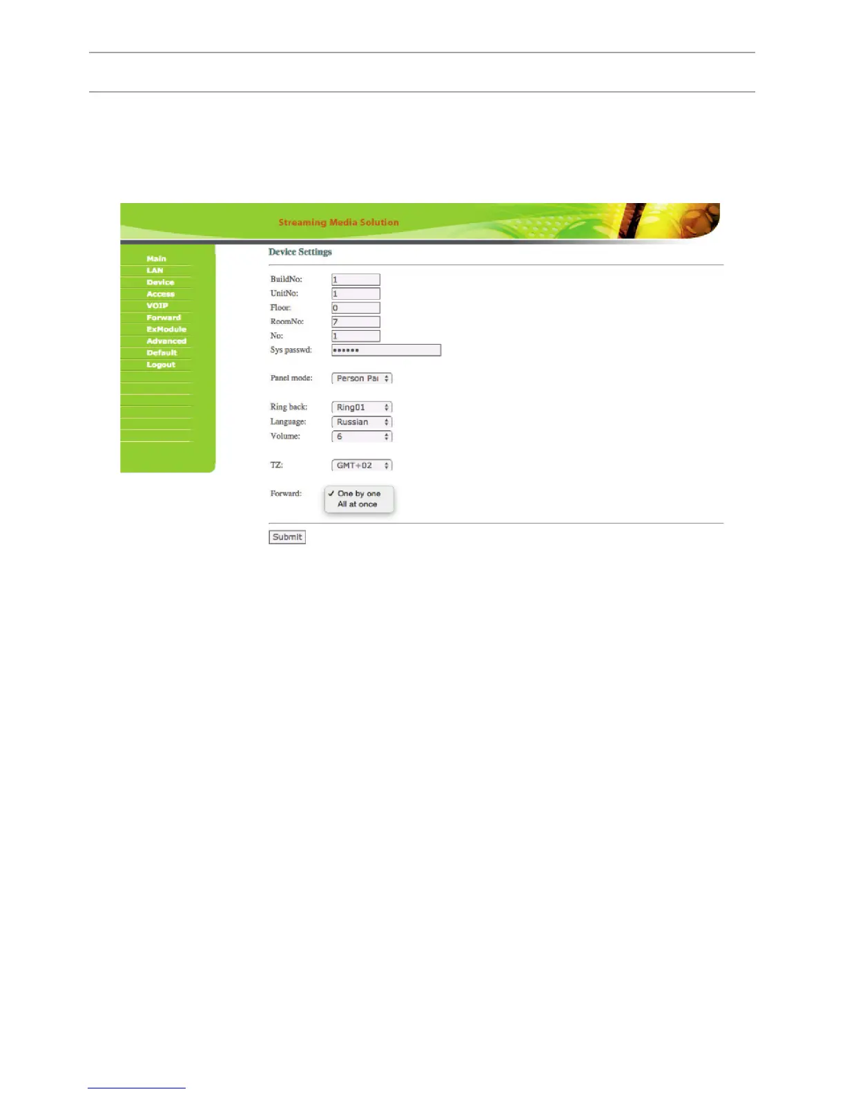 Select «Device» to access the conguration of the logical address, the operating