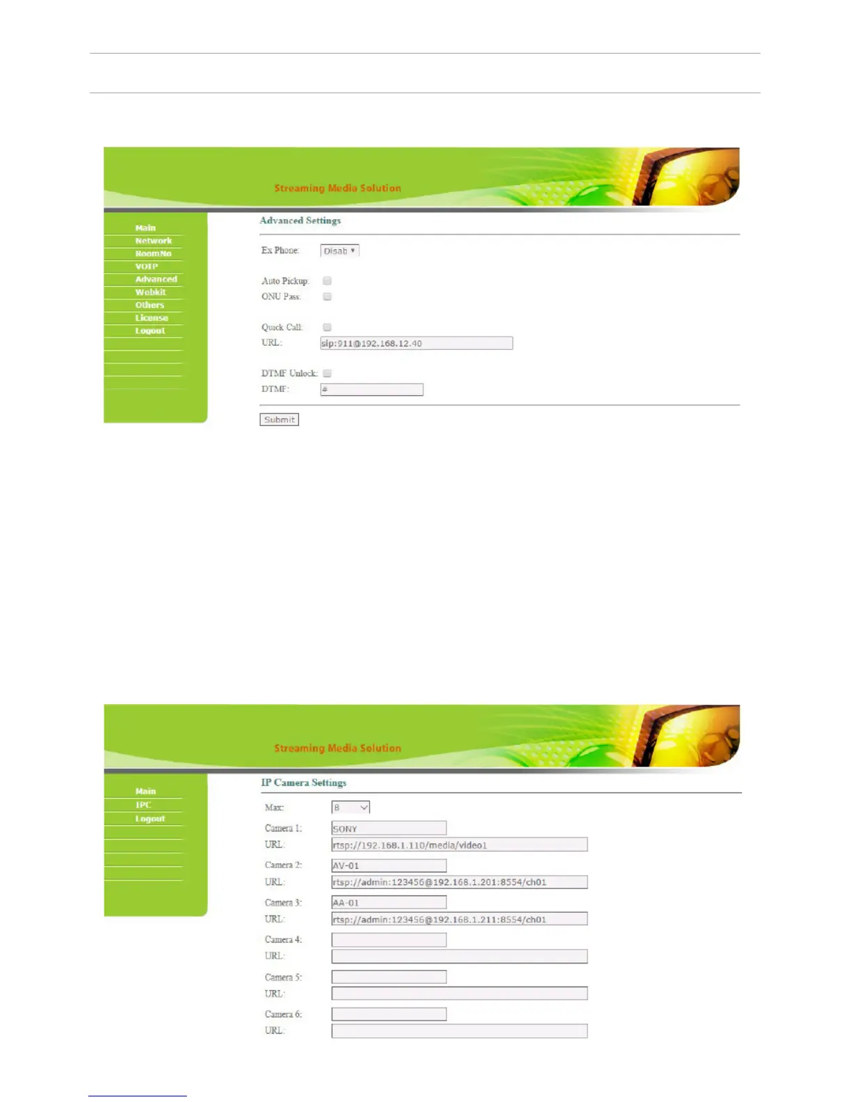 the set interface and add the IP cameras. Enter the user name and password (the