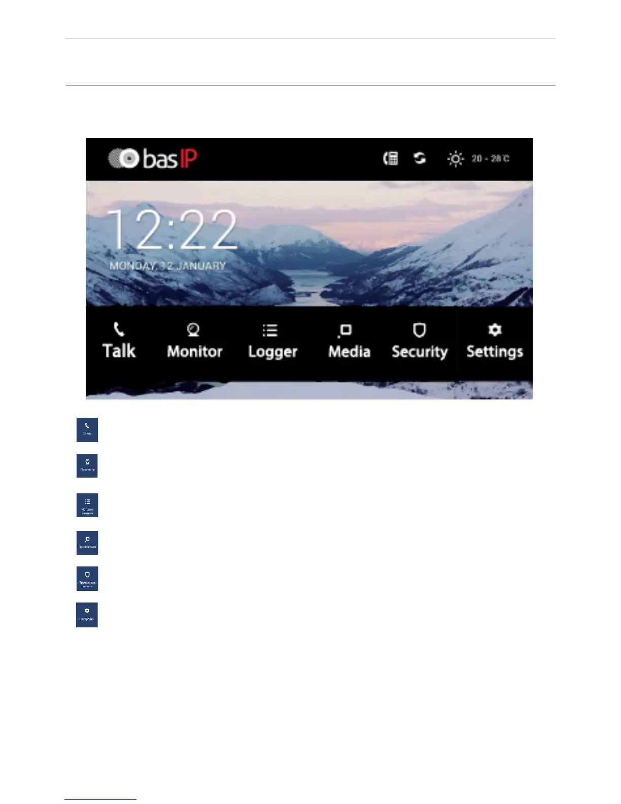 System settings: access to the setup menu