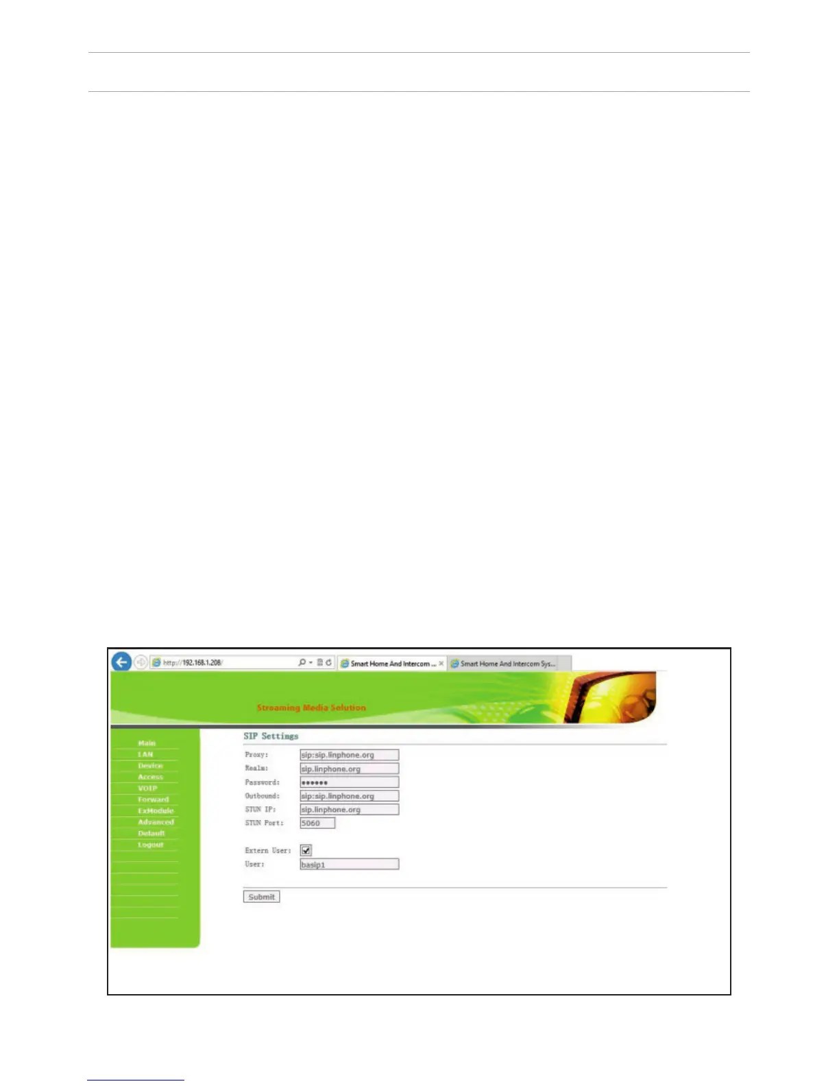4. SIP settings.