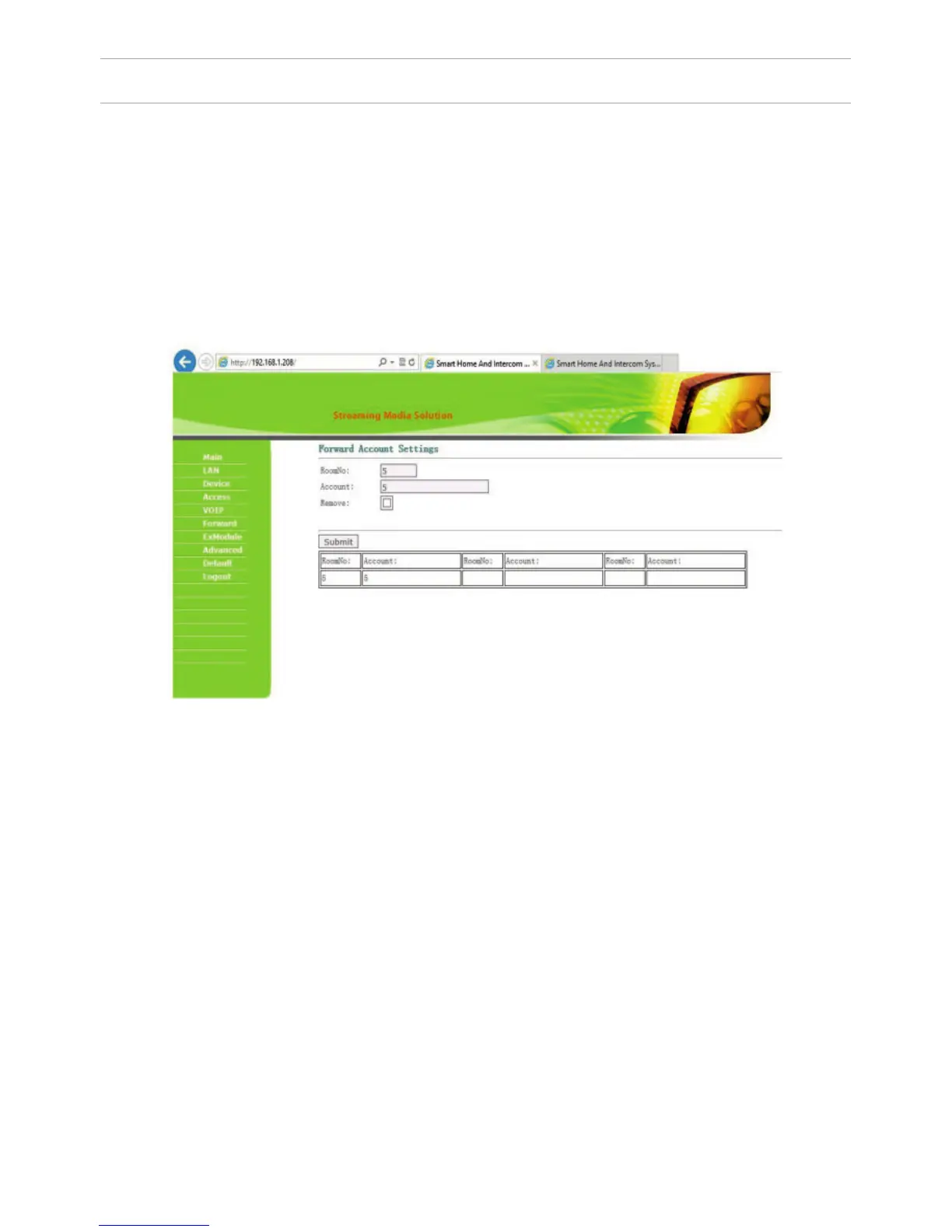”RoomNo” eld, after calling on which the call forwarding will occur, and in the