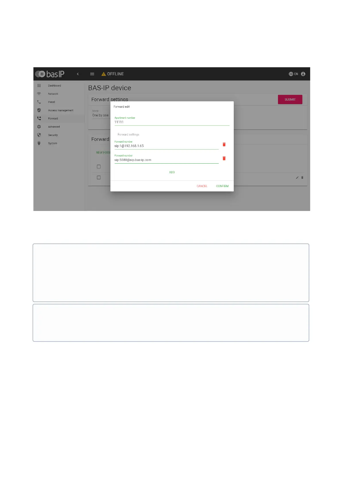 sip:5588@sip.bas-ip.com, where 5588 is the SIP number of the device being called,