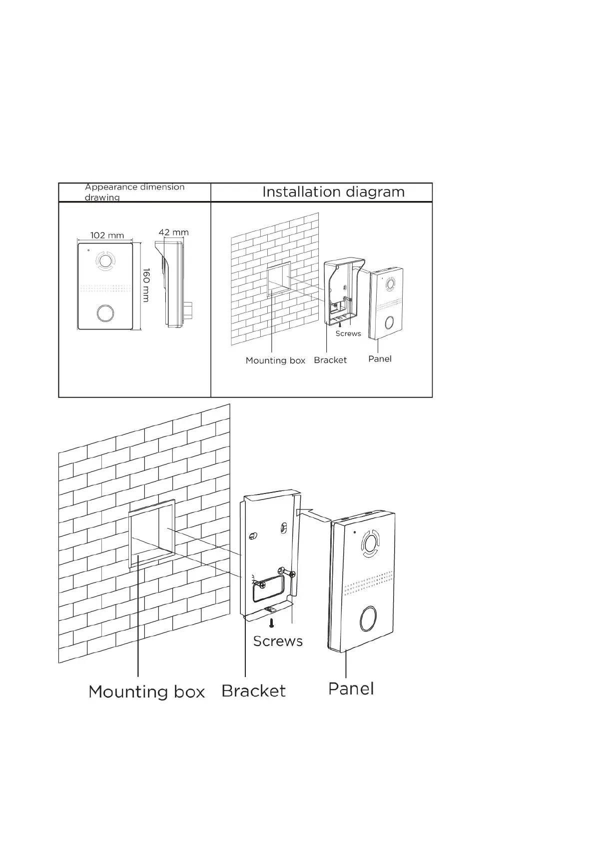 Before mounting the door panel, a hole or recess in the wall with dimensions of 20 × 50 × 60