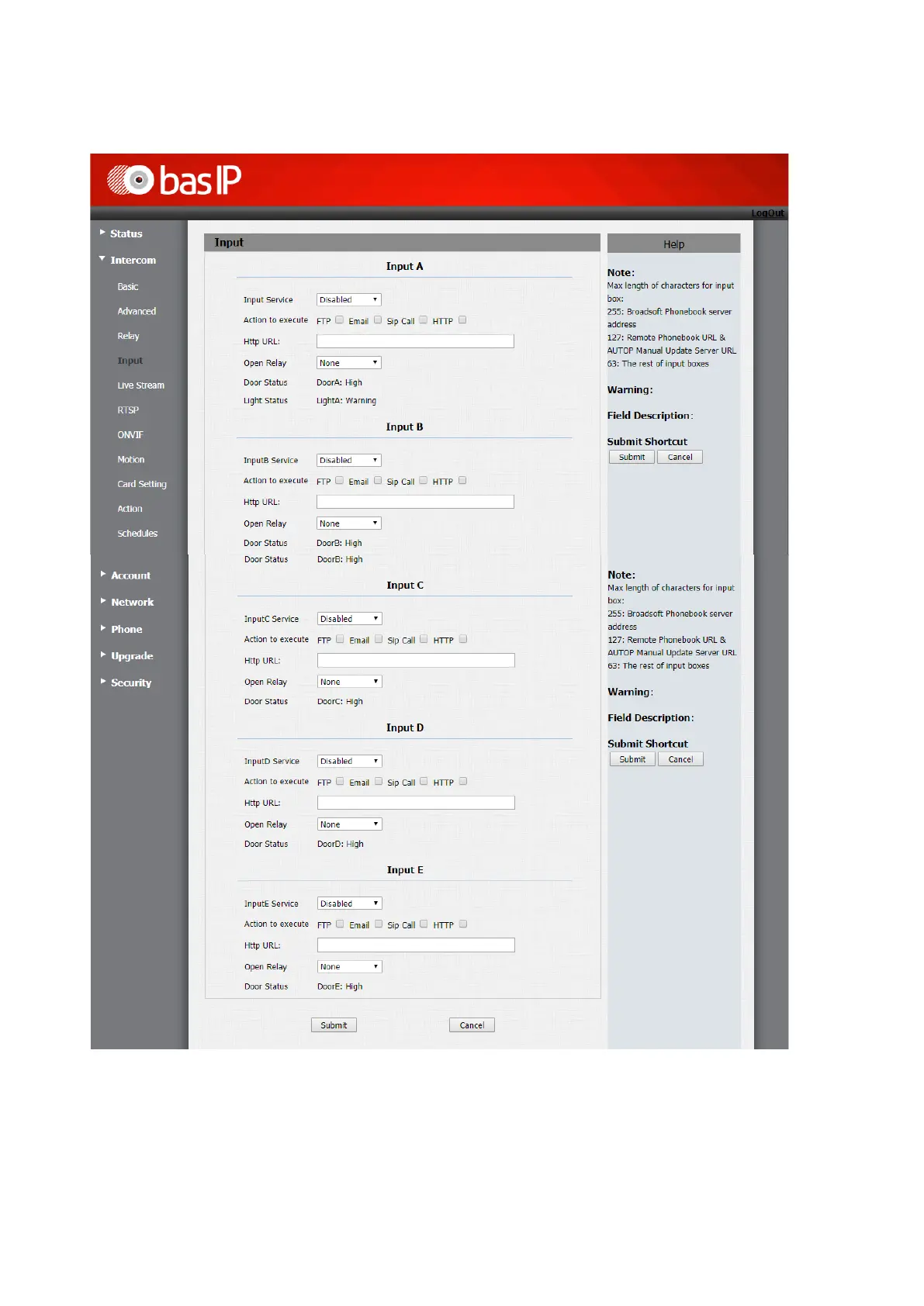 Input: Enable/disable function execution when the contacts are closed at the controlled input.