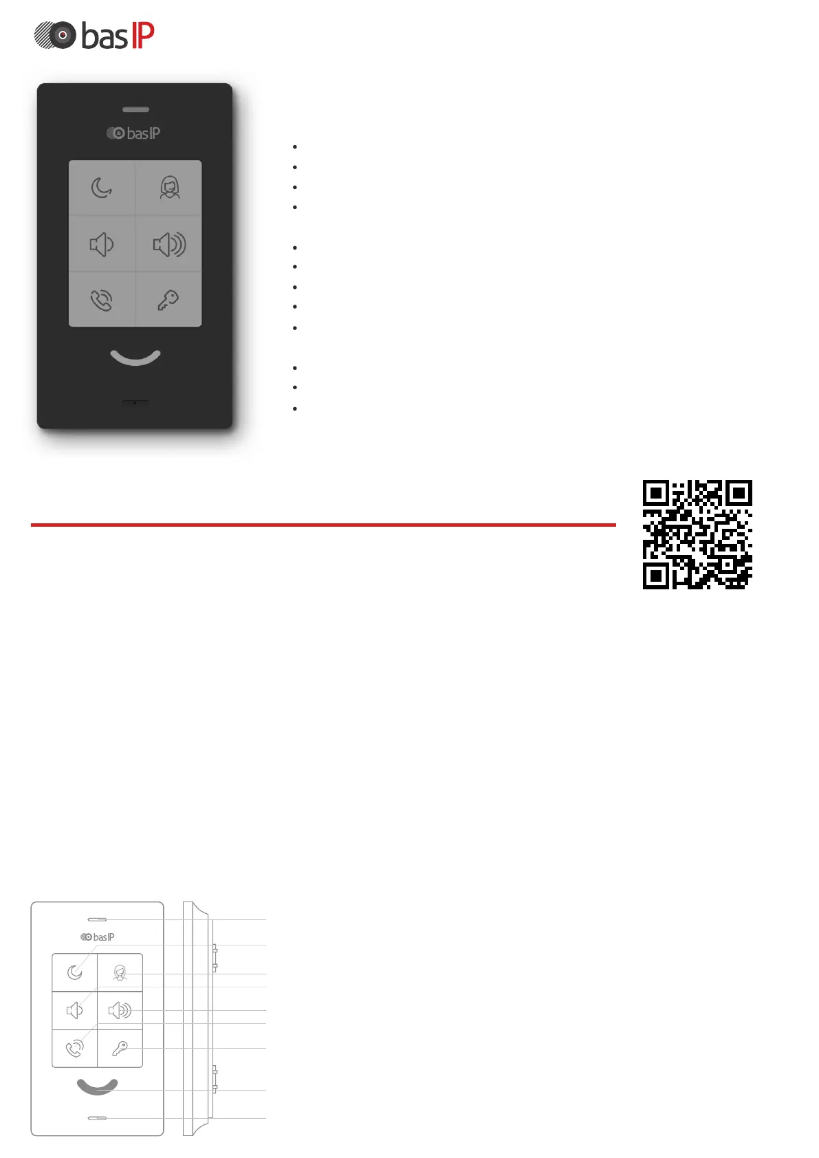IP audio hands-free with support for SIP, P2P and internal BAS-IP protocol.