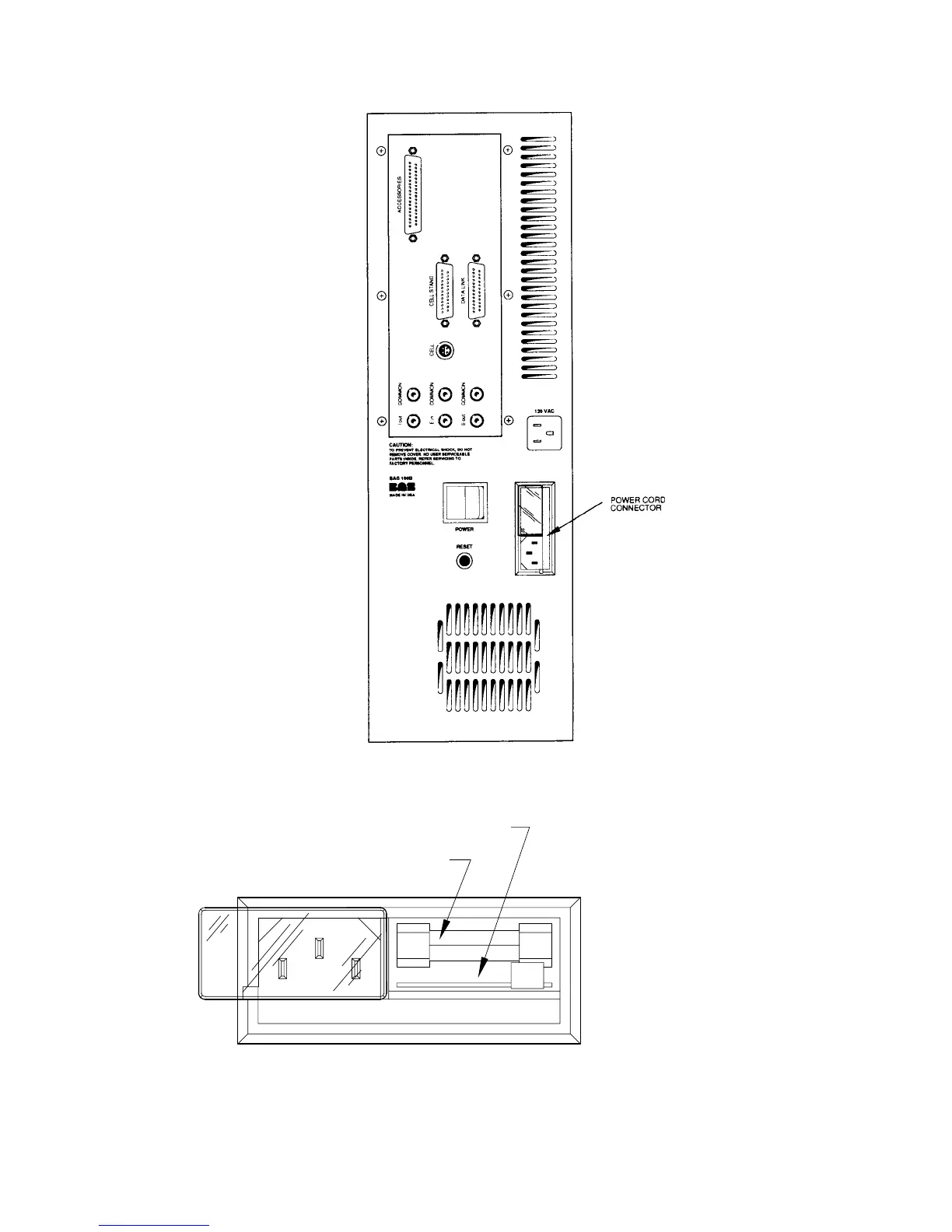 Rear panel of BAS 100B (the ports that are not required for the BAS 100B/W are