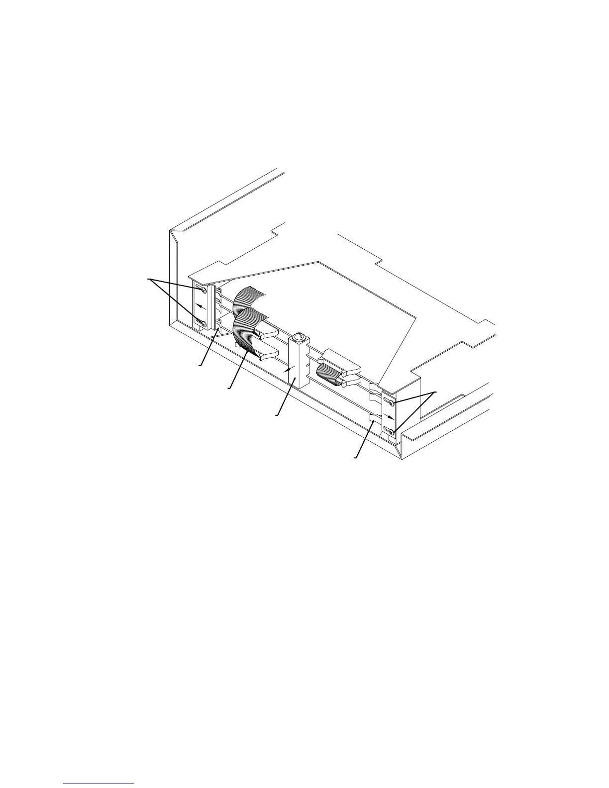 b) Loosen four designated screws (Item 2) on card rack and slide card retainer