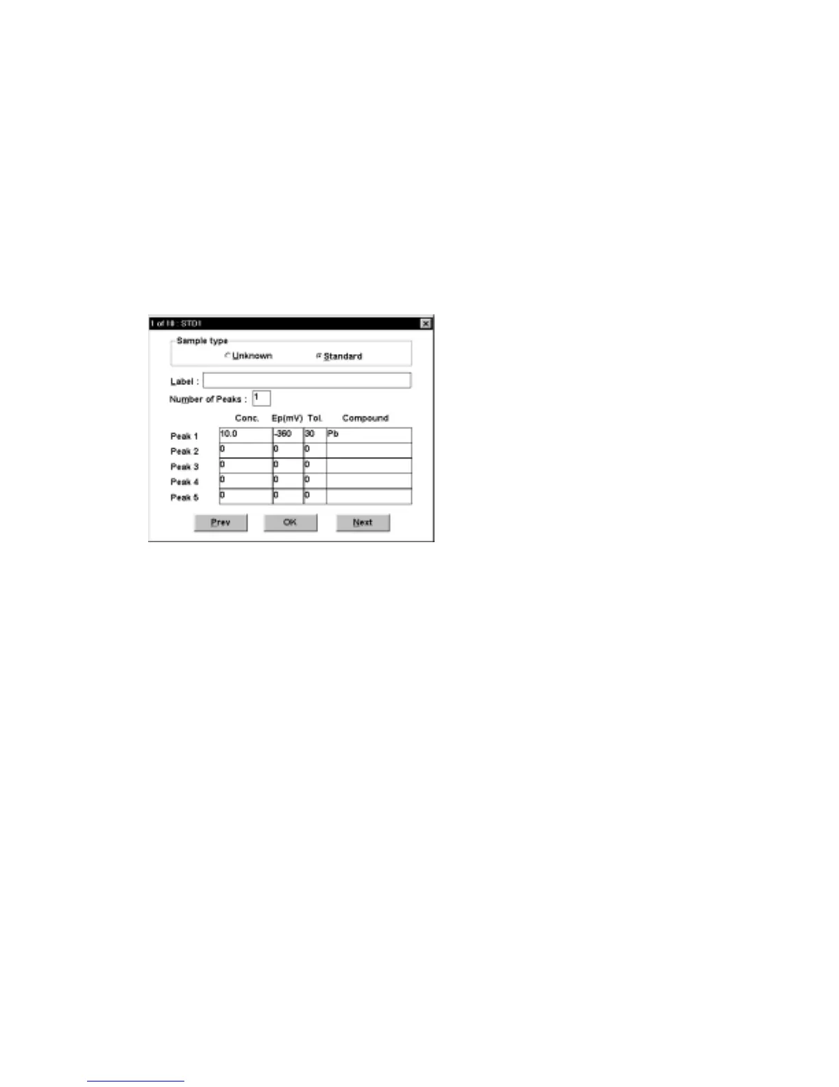 must all be specified. In addition, the peak potentials (